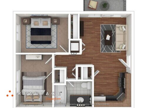 Our renovated 2 bedroom floorplan offers hardwood floors, stainless steel appliances, modern fixtures, granite counter tops, smart thermostat, smart door lock and a private balcony or patio.