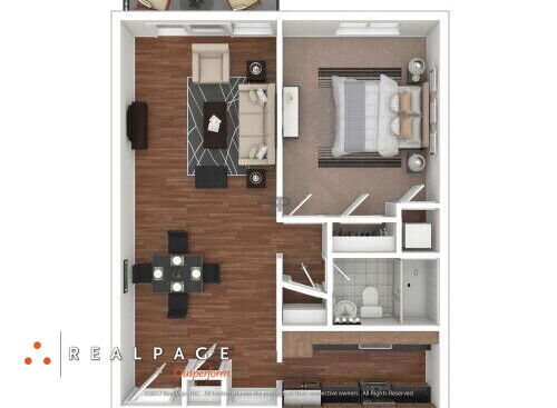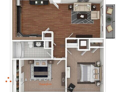 Our renovated 1 bedroom floorplan offers hardwood floors, stainless steel appliances, modern fixtures, granite counter tops, smart thermostat, smart door lock and a private balcony or patio.